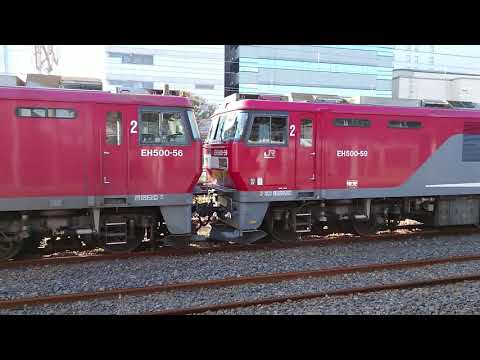 2番線から上り方引上線に引上げ、退行して一旦停止し後方のコキを解放するところまでは写っていません。それ以降の、引上→日立発送分の連結→引上→いったん解放した後尾車の連結→発車までの動画です。